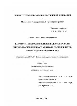 Разработка способов повышения достоверности сейсмо-деформационного контроля состояния кровли при подземной добыче руд