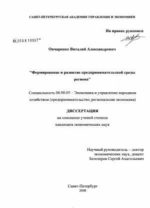 Глава 1. ПРЕДПРИНИМАТЕЛЬСКАЯ СРЕДА РЕГИОНА И ФАКТОРЫ ОПРЕДЕЛЯЮЩИЕ ЕЕ РАЗВИТИЕ