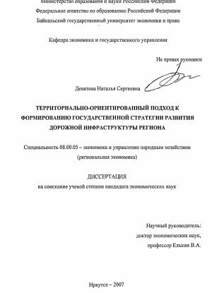Глава 1. Территориальноориентированный подход в системе государственного управления дорожной инфраструктурой региона