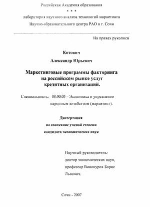 Глава 3. Маркетинговая критериальность факторинговых программ российских банков.