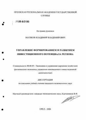 2.3 Управление развитием инвестиционного потенциала региона на основе реализации региональной инвестиционной политики