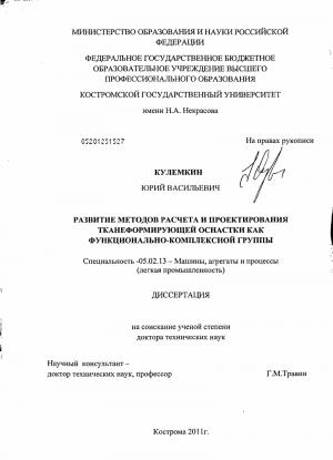 Глава 3. Мел одическое обеспечение проектного расчета тканеформирующей оснастки и е элементов