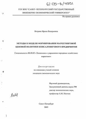 ГЛАВА 3. МОДЕЛИ И МЕТОДЫ ФОРМИРОВАНИЯ ЦЕНОВОЙ СТРАТЕГИИ И ТАКТИКИ КОНСАЛТИНГОВОГО ПРЕДПРИЯТИЯ