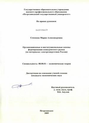 Н.З. Институциональная среда электроэнергетического рынка.