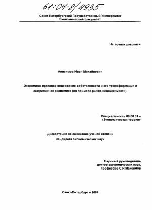 1. Теоретические основы собственности, как развивающейся экономикоправовой категории