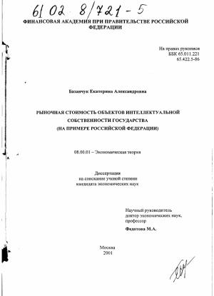 ГЛАВА I. ПОНЯТИЕ РЫНОЧНОЙ СТОИМОСТИ ОБЪЕКТОВ ИНТЕЛЛЕКТУАЛЬНОЙ СОБСТВЕННОСТИ ГОСУДАРСТВА.