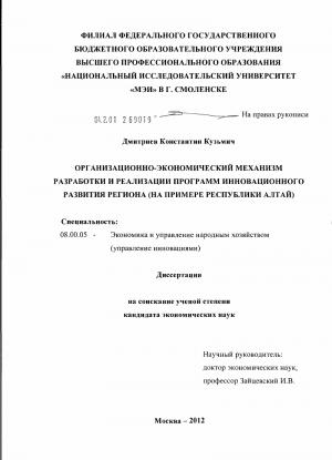 2.2. Обоснование содержания организационноэкономического механизма разработки и реализации программ инновационного развития региона