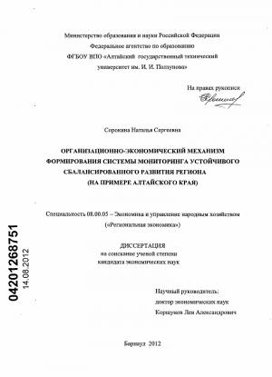 Апробация организационноэкономического механизма формирования системы мониторинга устойчивого сбалансированного развития экономики Алтайского