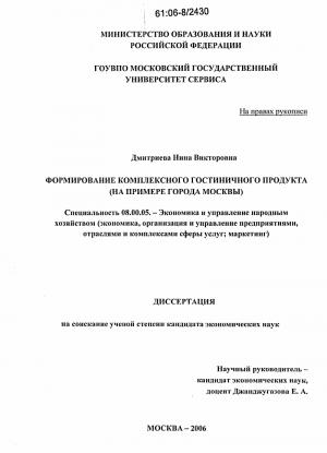 Глава. III. Научнометодические и практические рекомендации по формированию комплексного гостиничного продукта на примере г.