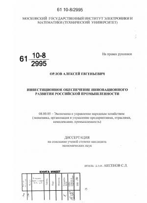 ГЛАВА 3. Стимулирование инвестиционной активности в инновационной сфере промышленного производства России