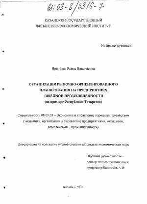 2.2. Исследование системы рыночноориентированного планирования на предприятиях швейной промышленности