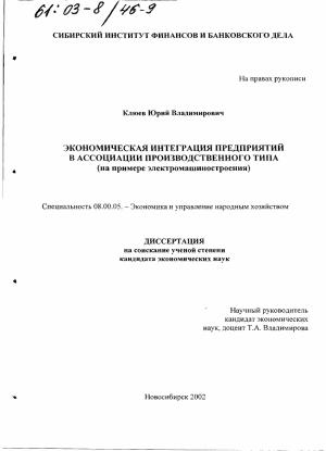 ГЛАВА 3.МЕТОДИЧЕСКИЕ ПОДХОДЫ К ФОРМИРОВАНИЮ МЕХАНИЗМА ВЗАИМОДЕЙСТВИЯ ПРЕДПРИЯТИЙ ЭЛЕКТРОМАШИНОСТРОЕНИЯ В АССОЦИАЦИИ