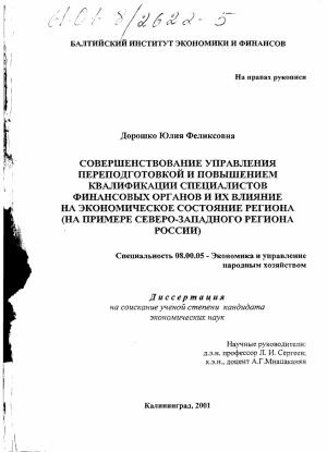 Совершенствование управления переподготовкой и повышением квалификации специалистов финансовых органов и их влияние на экономическое состояние региона : На примере Северо-Западного региона России