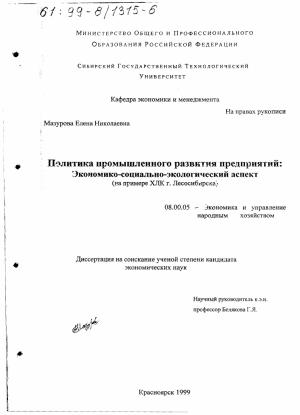 Политика промышленного развития предприятий: экономико-социально-экологический аспект : На примере ХЛК г. Лесосибирска