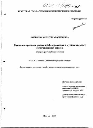 ГЛАВА 2. АНАЛИЗ ОРГАНИЗАЦИИ И ФУНКЦИОНИРОВАНИЯ СУБФЕДЕРАЛЬНЫХ И МУНИЦИПАЛЬНЫХ ОБЛИГАЦИОННЫХ ЗАЙМОВ РЕСПУБЛИКИ БУРЯТИЯ.