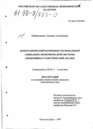 1. СТАТИСТИЧЕСКИЙ АНАЛИЗ ДЕМОГРАФИЧЕСКИХ ПРОЦЕССОВ В РОСТОВСКОЙ ОБЛАСТИ