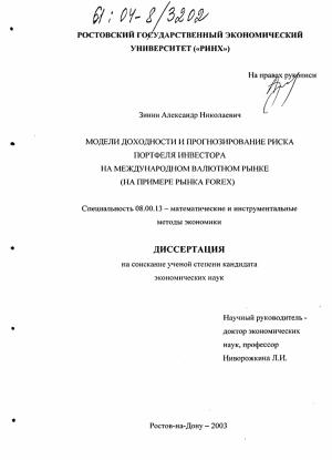 1.2 Аналитический обзор подходов к моделированию доходности и прогнозированию риска портфеля инвестора на рынке РСЖЕХ