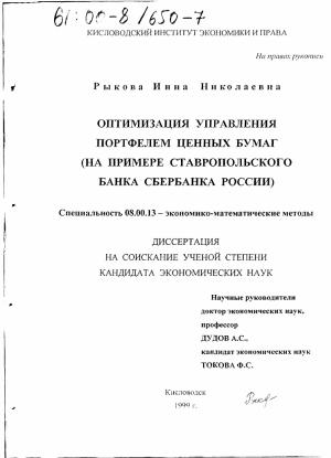 УПРАВЛЕНИЯ ПОРТФЕЛЕМ ЦЕННЫХ БУМАГ.