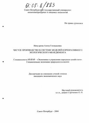 1. Развитие систем корпоративного экологического менеджмента в механизме управления природопользованием