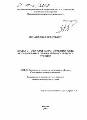 Глава 2. Методика сопиоэколотоокономичсскоИ оценки эффективности использования промышленных тврдых отходов