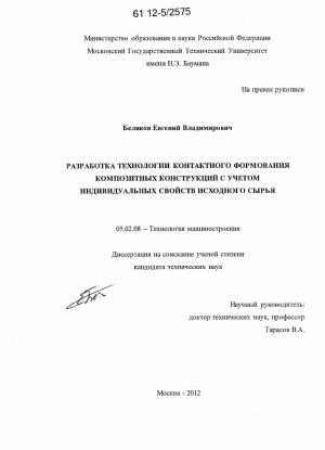 Разработка технологии контактного формования композитных конструкций с учетом индивидуальных свойств исходного сырья