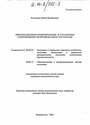 Глава 1 Теоретикометодические аспекты развития информационного моделирования в управлении экономическими системами