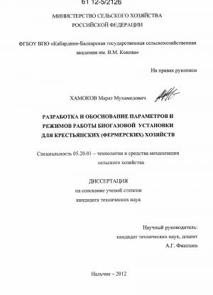 Разработка и обоснование параметров и режимов работы биогазовой установки для крестьянских (фермерских) хозяйств