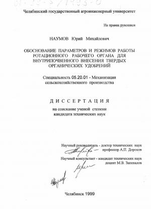 Обоснование параметров и режимов работы ротационного рабочего органа для внутрипочвенного внесения твердых органических удобрений
