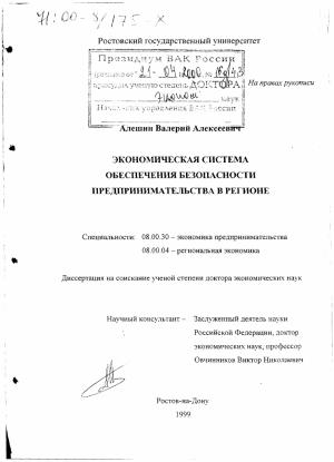 Экономическая система обеспечения безопасности предпринимательства в регионе