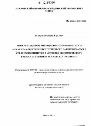 Модернизация организационно-экономического механизма обеспечения устойчивого развития малых и средних предприятий в условиях экономического кризиса : на примере Московского региона