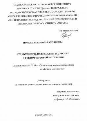 Управление человеческими ресурсами с учетом трудовой мотивации
