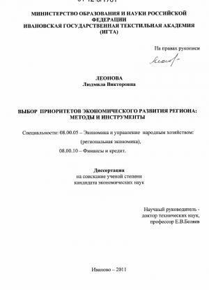 Выбор приоритетов экономического развития региона: методы и инструменты
