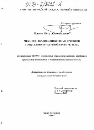 ГЛАВА 2. СОВЕРШЕНСТВОВАНИЕ МЕХАНИЗМА РЕАЛИЗАЦИИ КРУПНЫХ ПРОЕКТОВ СОЦИАЛЬНОКУЛЬТУРНОЙ СФЕРЫ В 9 РЕГИОНЕ