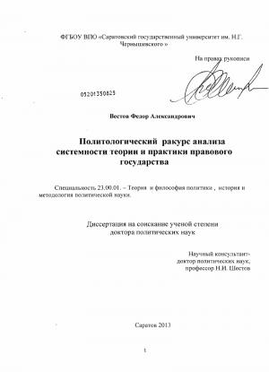Политологический ракурс анализа системности теории и практики правового государства