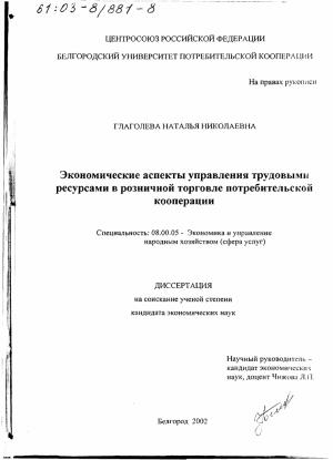 Глава III. Совершенствование управления трудовыми ресурсами в розничной торговле потребительской кооперации на основе