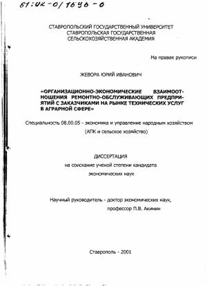 3.1. Пути совершенствования организационноэкономических взаимоотношений ремонтнообслуживающих предприятий с заказчиками.