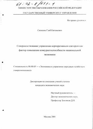 ГЛАВА 3. СОВЕРШЕНСТВОВАНИЕ КОРПОРАТИВНОГО УПРАВЛЕНИЯ И РЕГУЛИРОВАНИЕ КОРПОРАТИВНОГО СЕКТОРА ЭКОНОМИКИ РОССИИ