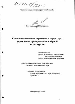 Глава 2. Стратегическое управление развитием предприятий чрной металлургии России