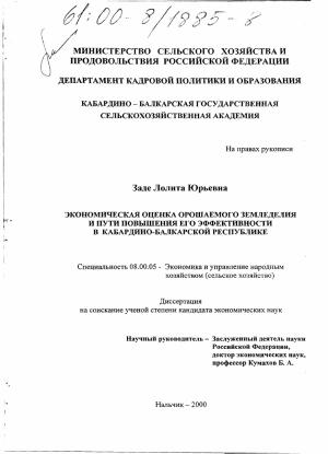 эффективности использования орошаемых земель в условиях рыночных отношений.