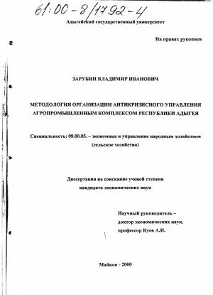 Глава 2. Методологические основы формирования системы антикризисного управления в АПК Адыгеи.