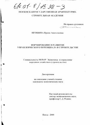 Формирование и развитие управленческого потенциала в строительстве