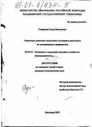 Управление развитием личностного потенциала работников на промышленных предприятиях
