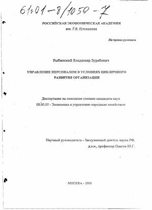 Глава II. Управление персоналом в рамках цикличного развития организации.