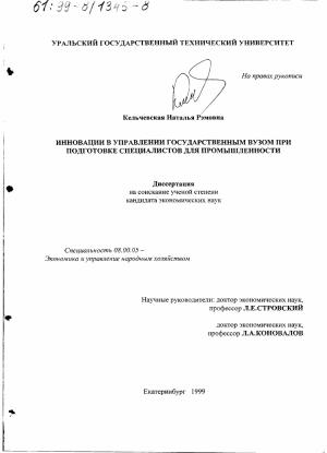 Инновации в управлении государственным вузом при подготовке специалистов для промышленности