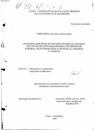 Оптимизация использования производственных ресурсов лесопромышленных предприятий в новых экономических и производственных условиях