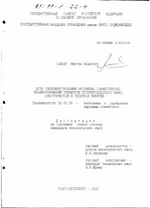 Пути совершенствования механизма хозяйственных взаимоотношений субъектов потребительского рынка электрической и тепловой энергии