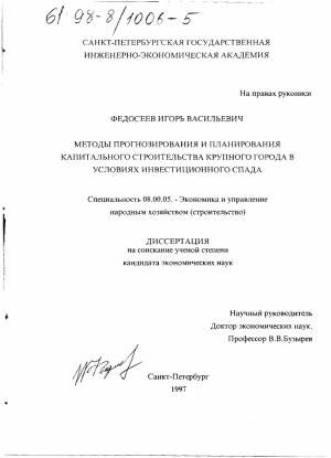ГЛАВА 2. ОСНОВНЫЕ ПРИНЦИПЫ ПРОГНОЗИРОВАНИЯ И ПЛАНИРОВАНИЯ КАПИТАЛЬНОГО СТРОИТЕЛЬСТВА В УСЛОВИЯХ ИНВЕСТИЦИОННОГО СПАДА