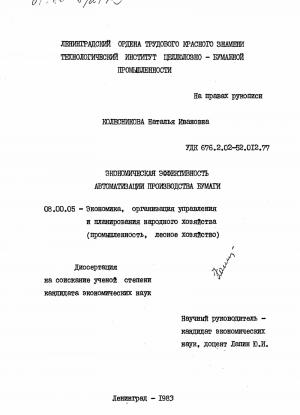 Глава 3. Экономическая эффективность автоматизации бумагоделательных машин .