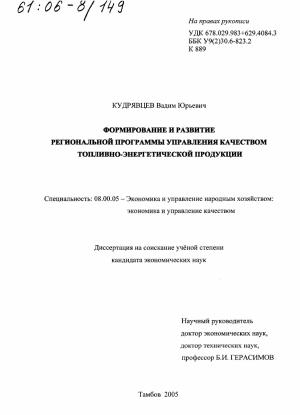 И РАЗВИТИЯ РЕГИОНАЛЬНОЙ ПРОГРАММЫ УПРАВЛЕНИЯ КАЧЕСТВОМ ТОПЛИВНОЭНЕРГЕТИЧЕСКОЙ ПРОДУКЦИИ