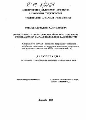 Глава 1. ТЕОРЕТИЧЕСКИЕ ОСНОВЫ ТЕРРИТОРИАЛЬНОЙ ОРГАНИЗАЦИИ ПРОИЗВОДСТВА ХЛОПКАСЫРЦА И ПОВЫШЕНИЕ ЕЕ ЭФФЕКТИВ НОСТИ В УСЛОВИЯХ ПЕРЕХОДНОЙ ЭКОНОМКИ.